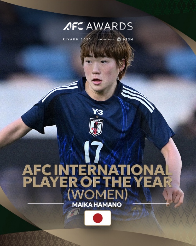10月17日讯 据亚足联官方社媒的消息,2025年亚足联年度亚洲最佳海外女足球员的评选结果揭晓,日本球员滨野舞香当选。