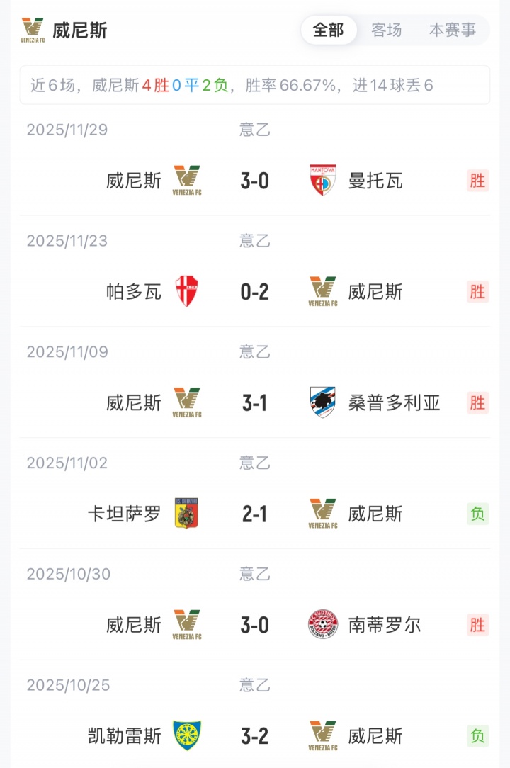 威尼斯替补:1-菲利普·斯坦科维奇、14-斯克凡诺·米内利、3-辛蒂安、30-斯沃博达、6-布西奥、18-海尼奥特、71-基科·佩雷斯、8-伊萨·伊比亚、19-比亚卡森、27-哈达德、7-菲拉、9-阿多伦特